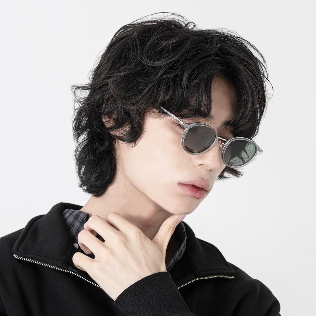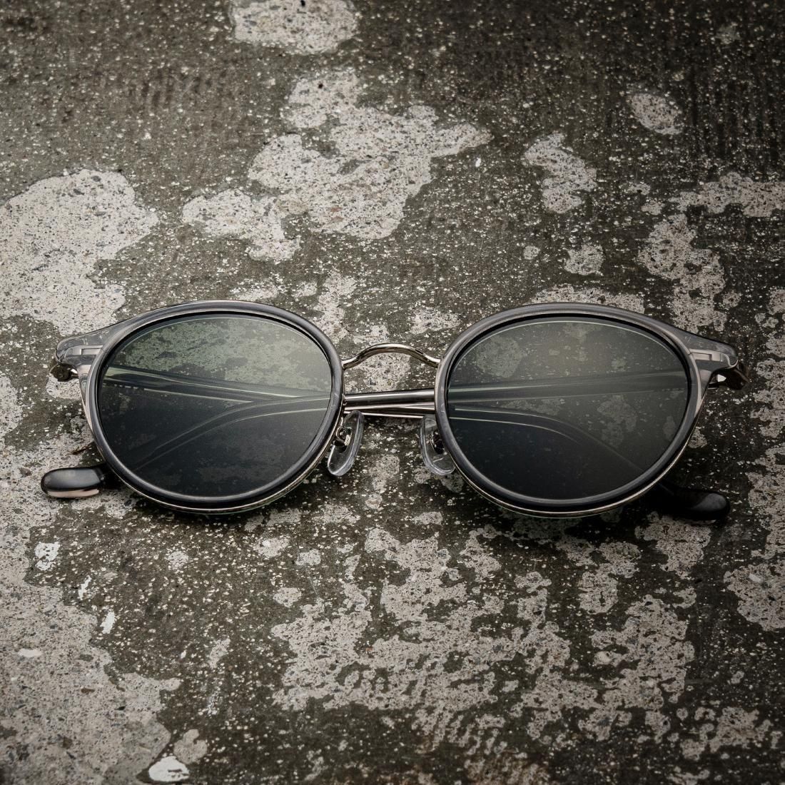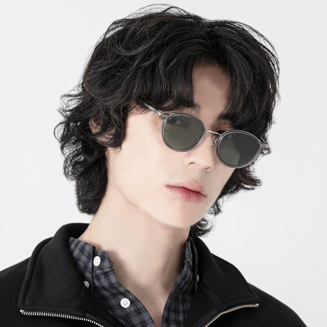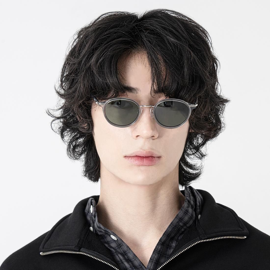 グレーのフレームと透け感のあるグリーンのレンズは、クールさと自然な優しさが共存したカラーリングで品のある抜け感を演出します。