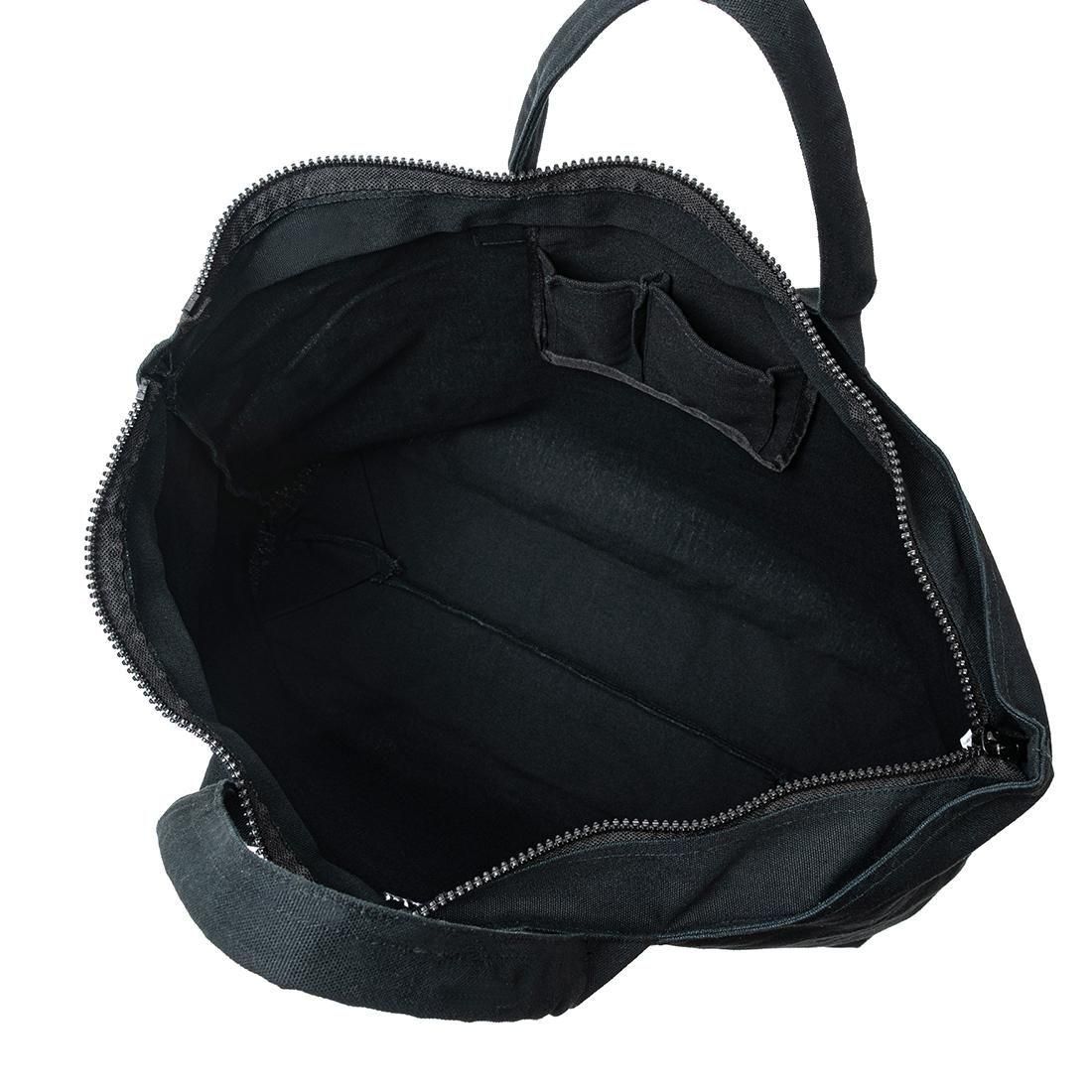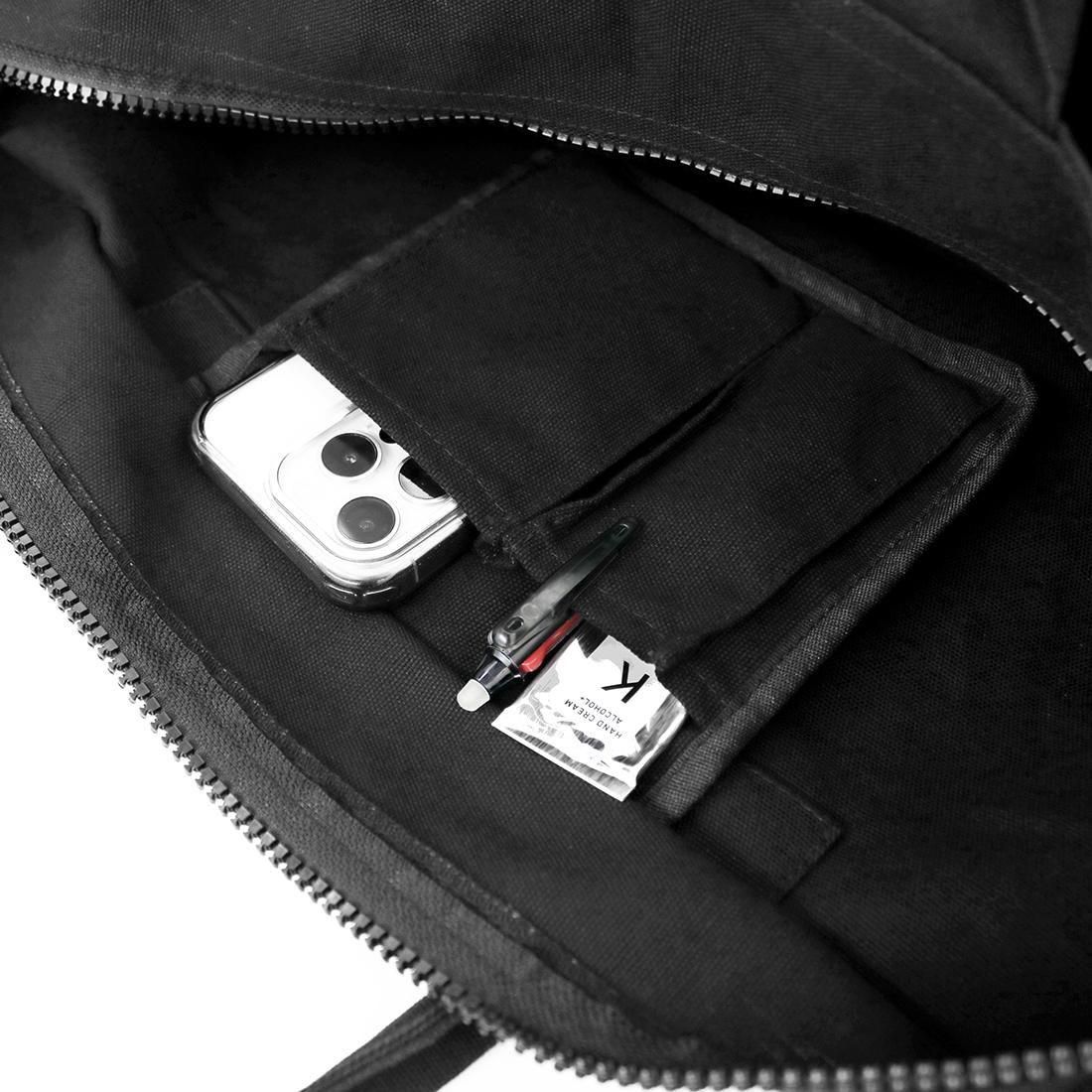 丈夫なキャンバス生地が特徴の大容量ジップトートバッグ。