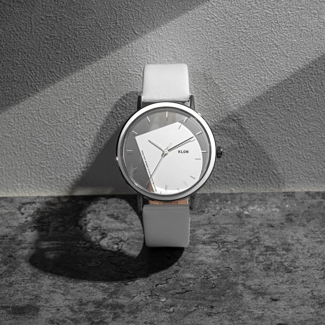 KLONのヒットシリーズである『INVISIBLE RELATION』のクリアな文字盤を踏襲し、今回の主役である四角の形が浮かびあがるようなデザイン。