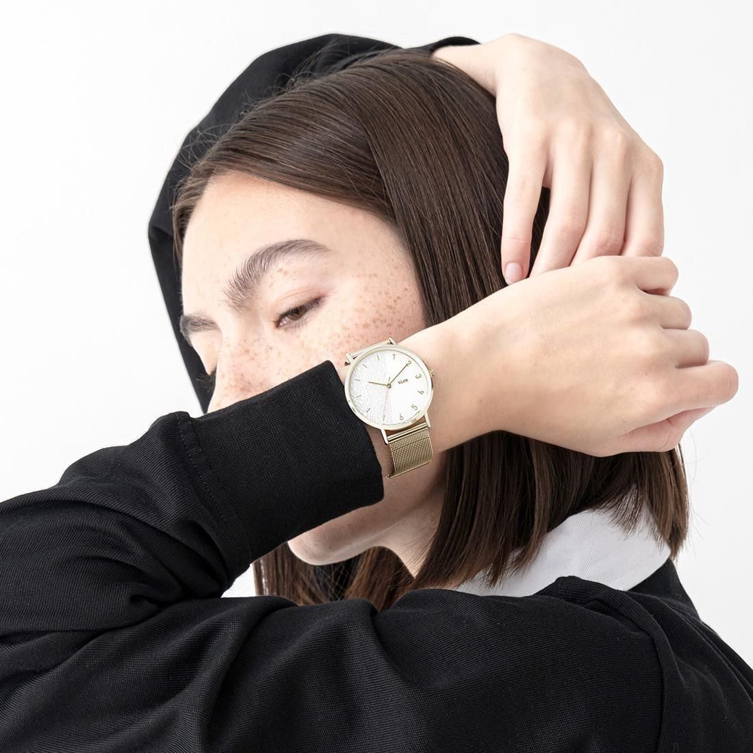 少し淡い印象のある色合いを採用、肌なじみの良いゴールドで日常使いしやすい腕時計に仕上げました。