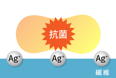 銀イオン加工繊維とは、銀イオン(Ag+)が持つ特性をまとわせた特殊な繊維です。
