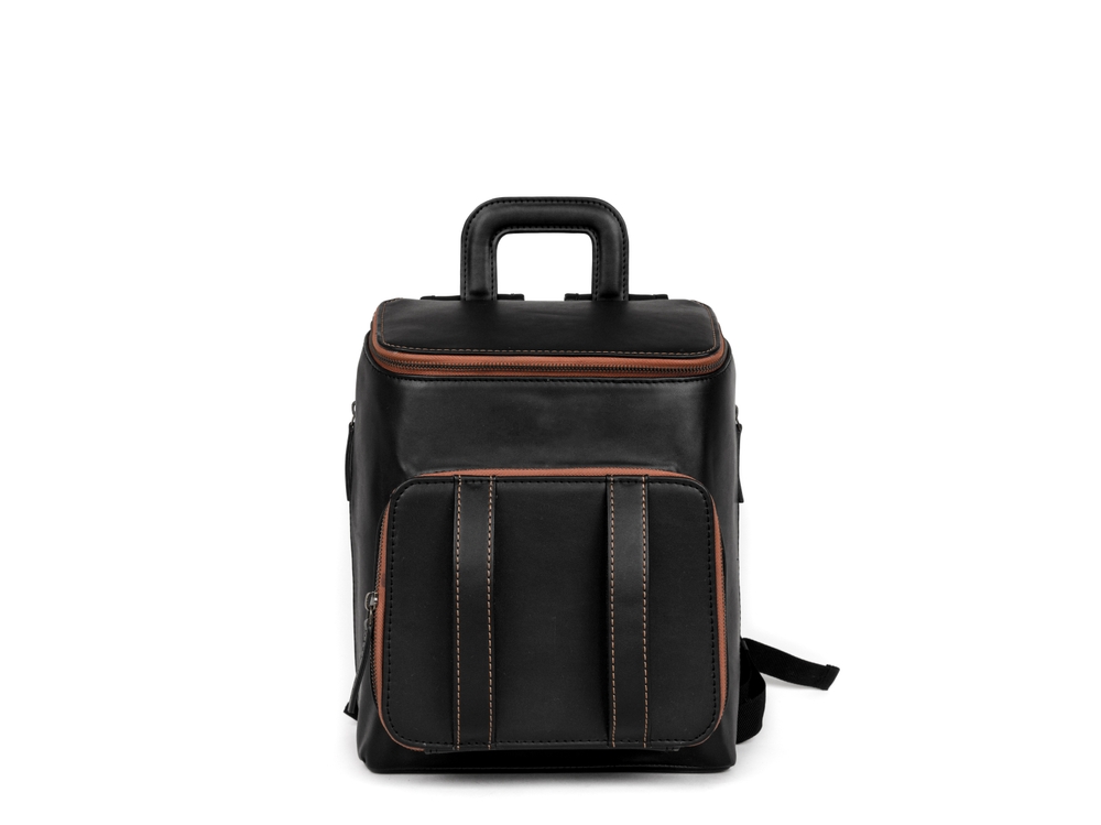 内装には、鍵をかけられるキーフックや、取り外し可能なボトルホルダー、ペンホルダーなど、細かく整理できるポケットが充実しています。素材には高級感と耐久性のある本革を使用し、底面には底鋲を配置することで傷や汚れを防ぎ、長く愛用できる作りになっています。ショルダーストラップはズレ落ち防止加工が施され、不要時には本体背面に収納できるため、見た目もスマート。旅行時に便利なキャリーオンベルトも付いており、あらゆるシーンで活躍するリュックです。