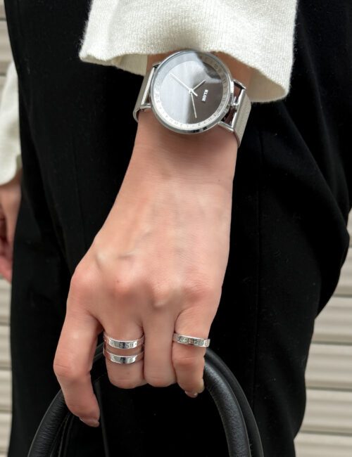 KLON公式サイト 本社スタッフ 2026.03.02 Like 綺麗めコーデに合わせやすい 小ぶりのバッグ、ネックレスやリングも主張しすぎないアイテムを合わせてみました! このリングは2WAYなので気分でイヤーカフにもできます♪ STAFF:157cm 着用アイテム KLON SLIM SOLAR STYLE ENGRAVE TIME -SILVER MESH- 38mm ¥19,800 KLON LEATHER BAG DRUM MINI BLACK ¥22,000 KLON RH simply EAR CUFF -ANN- ¥4,840 KLON RH simply EAR CUFF -JOE- ¥5,940 KLON NECKLACE 96 SILVER ¥13,970 次のスナップ